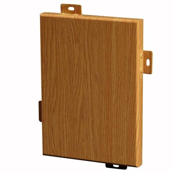 木纹铝单板是以高等级铝合金为主要材料,按工程现场设计的尺寸、形状和构造形式经过数控折弯等技术成型,并在其表面氟碳喷涂的基础上采用意大利木纹膜,经抽真空处理,将木纹膜移印到铝单板的氟碳涂层上的一种金属装饰材料